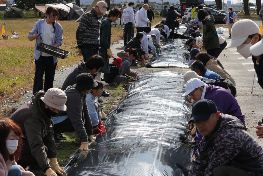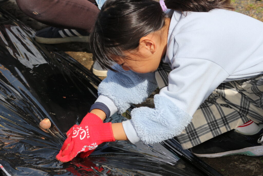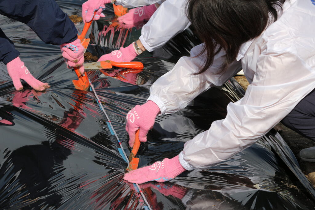 雑草が生えにくくなるようビニールシートをかけました🌱