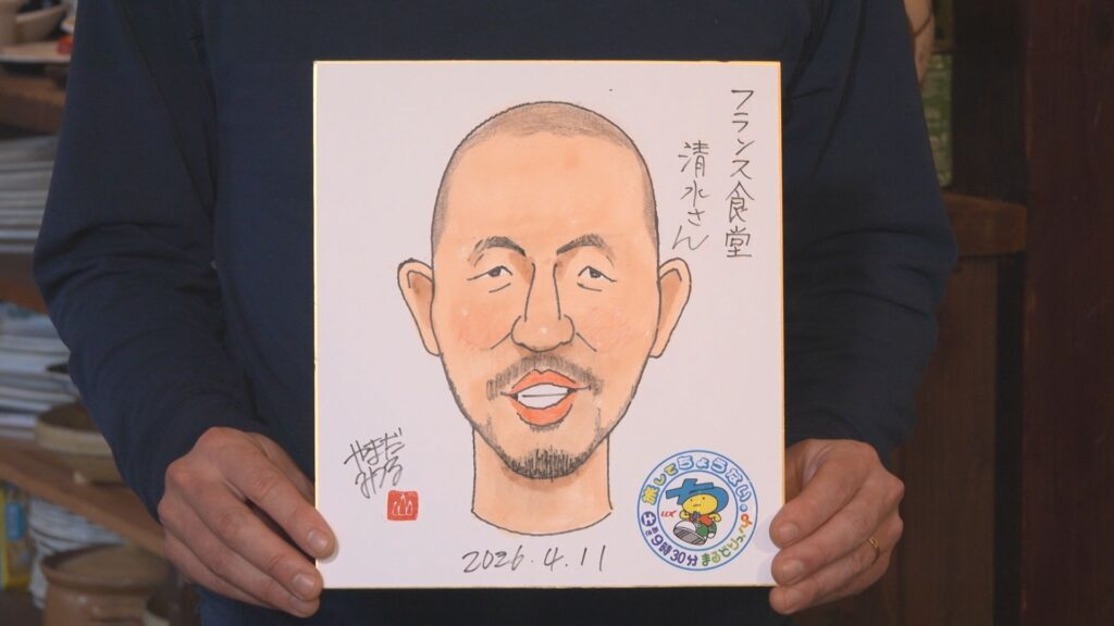 今回の似顔絵は「フランス食堂 清水」の清水大輔さん。