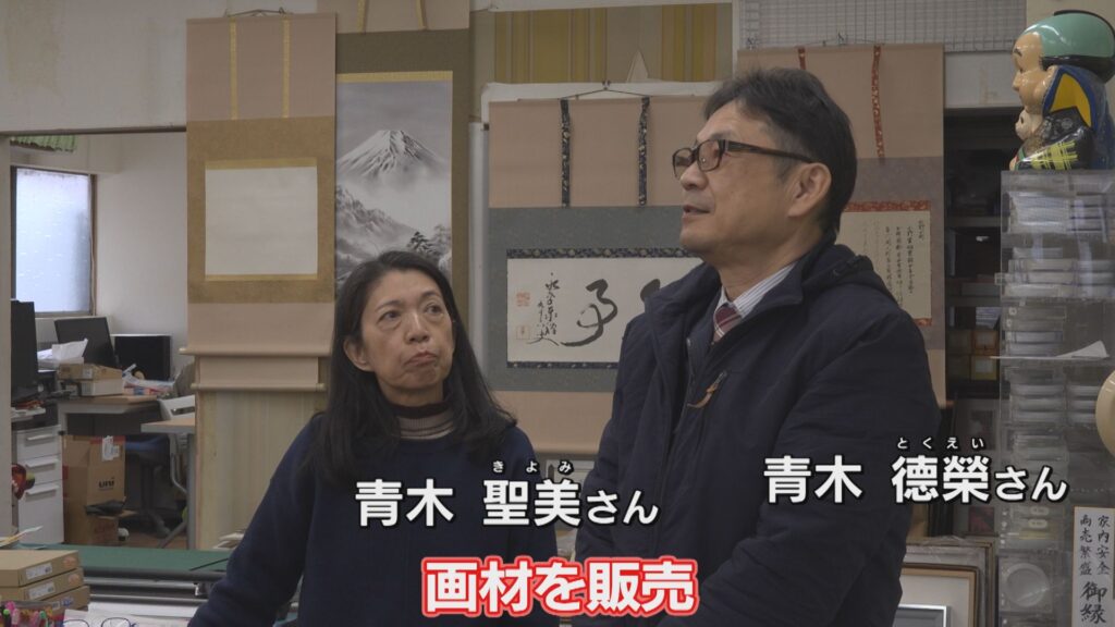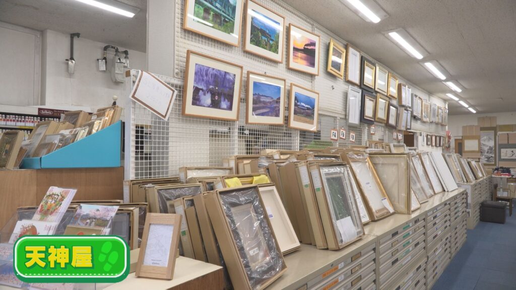 額縁や絵具、掛け軸、筆、ペンといった画材をはじめ、文具なども販売。