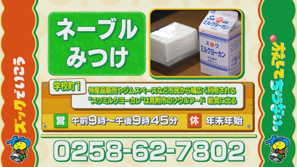 スワミルクヨーカンは見附の名物として知られ、学校給食にも登場するそうです。
