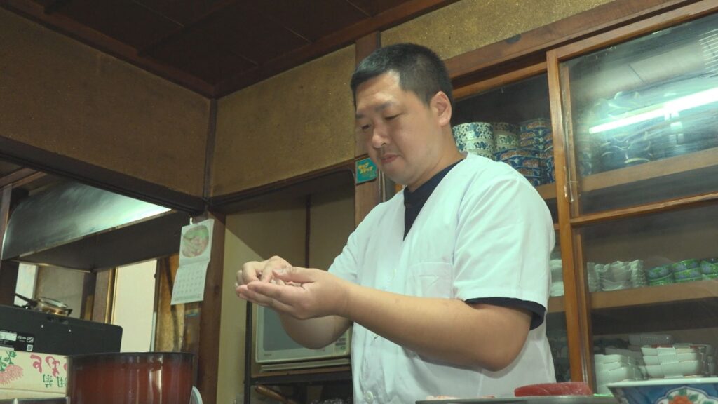 今回の似顔絵は「道潟屋」の酒井暢宏さん。
