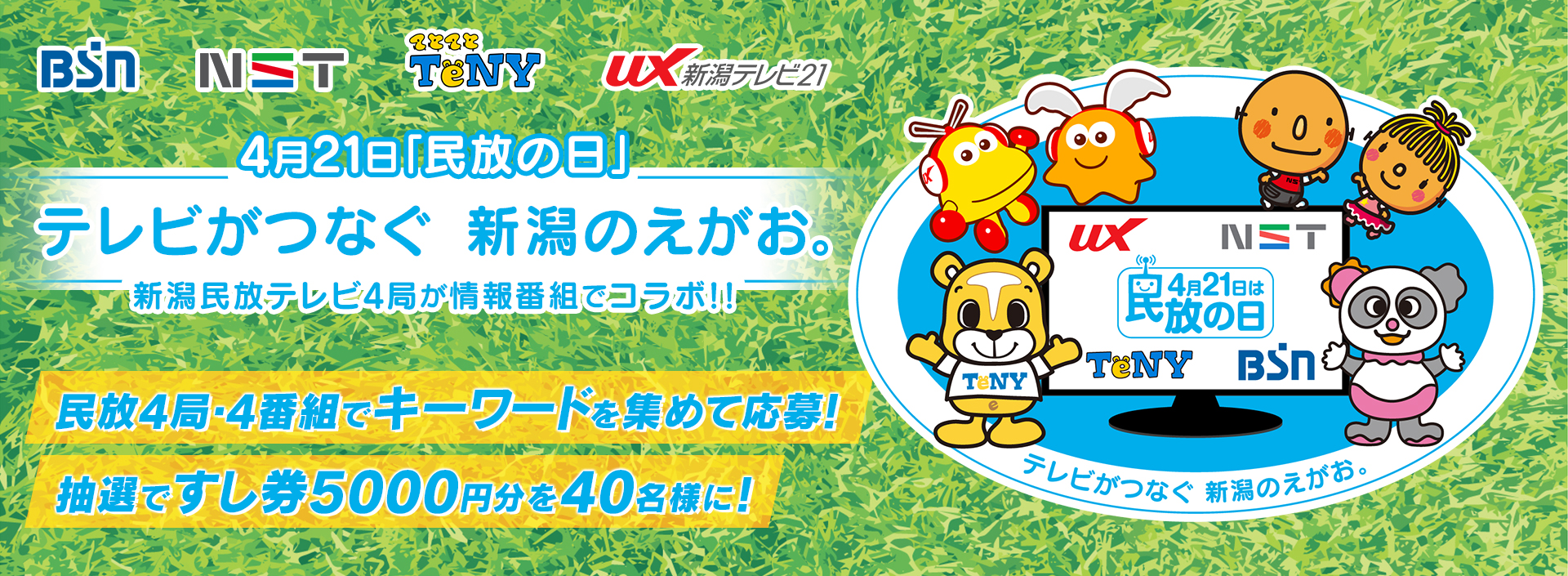 4月21日「民放の日」に合わせて、新潟県内の民放4局がタッグを組みます!普段はライバルですが、テレビ局同士が力を合わせれば、たくさんの思いや元気を届けることができるはずです!